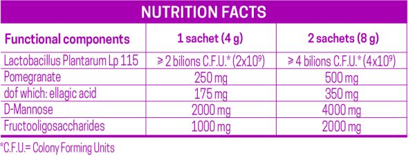 Food supplement based on D-Mannose, Pomegranate, Probiotics and FOS.