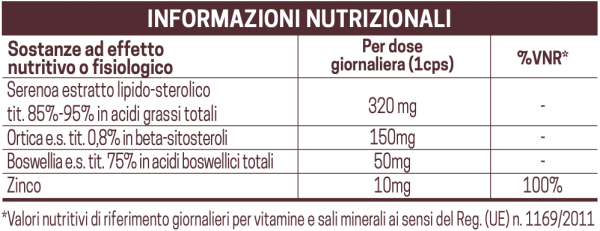 Food supplement based on Serenoa, Nettle, Boswellia and Zinc plant extracts.