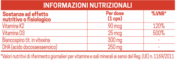 Integratore alimentare con Vitamina K2, Vitamina D3, DHA e vitexina da Biancospino.