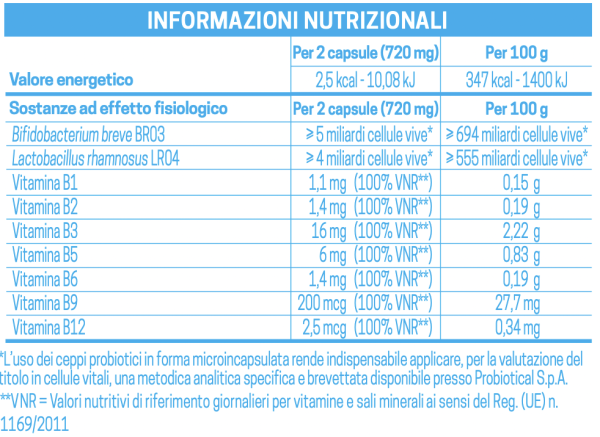 Integratore alimentare a base di Probiotici microincapsulati e Vitamine del gruppo B.