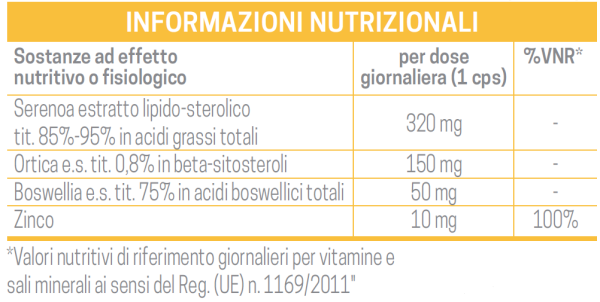 Integratore alimentare a base di estratti vegetali di Serenoa, Ortica, Boswellia e Zinco.